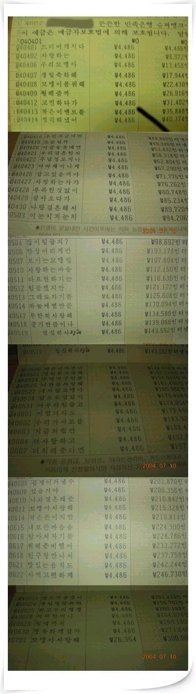 4486원에서 486은 사랑해의 예전 삐삐암호였고요....앞에 4천원은 30만원을 맞추기 위해서라는군요.... 헐~~