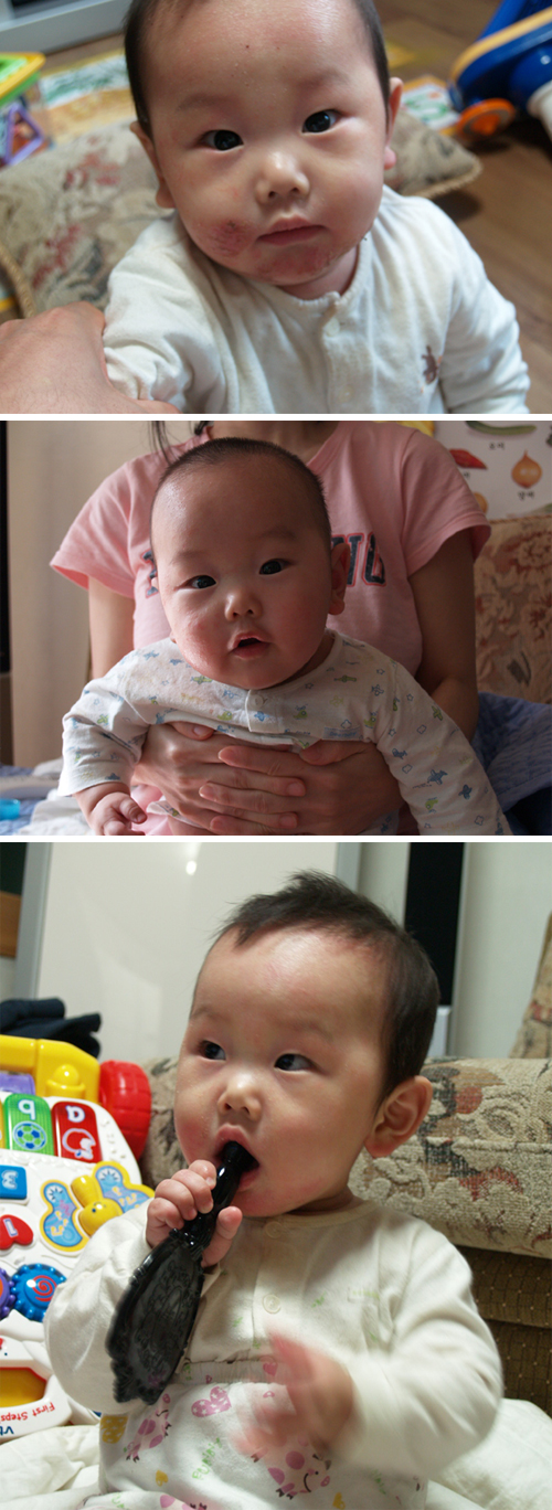 아가....얼굴 어째.....ㅠ_ㅠ 쑤바도 어릴때부터 아토피로 고생 많았어요.... 근데 13살때부터...조금씩 나아져서요... 이젠 약간만 남아있어요.. 음... 대부분의 아토피 애기들... 초등학교 6학년쯤은 지나야 좀 수그러든다고 하대요....ㅠ_ㅠ (안그런 아가들도 있지만..)