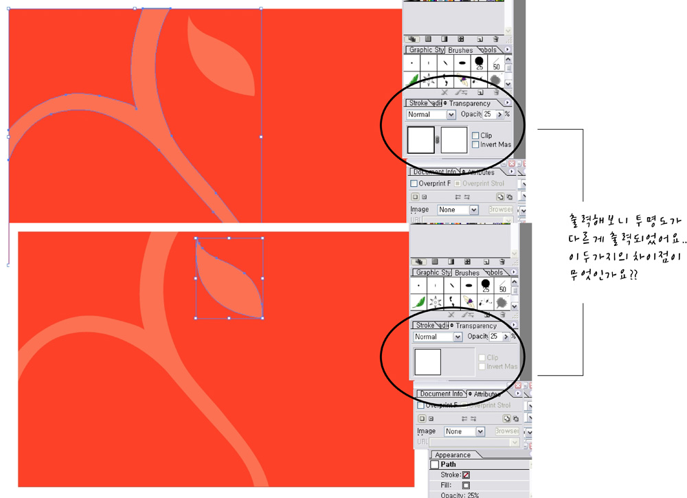 같은 25%의 투명도인데 다르게 인쇄가 되었어요..