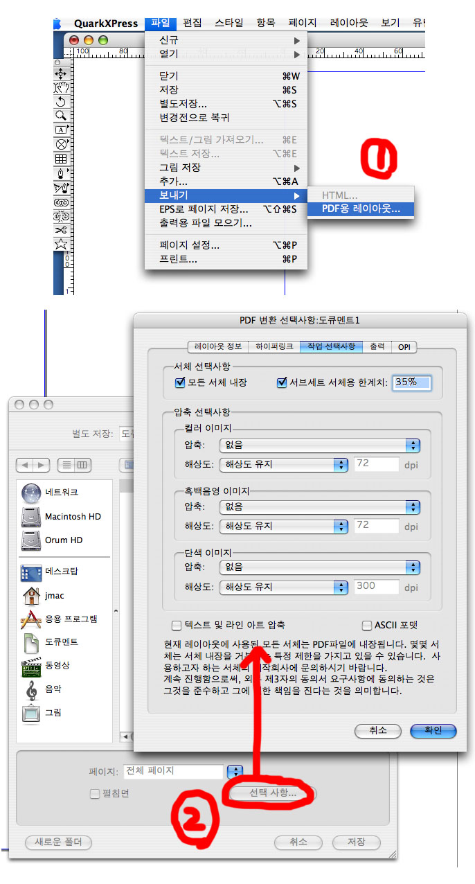 쿼억6.5에서 PDF변경시 그림처럼 하면 되는건가요?