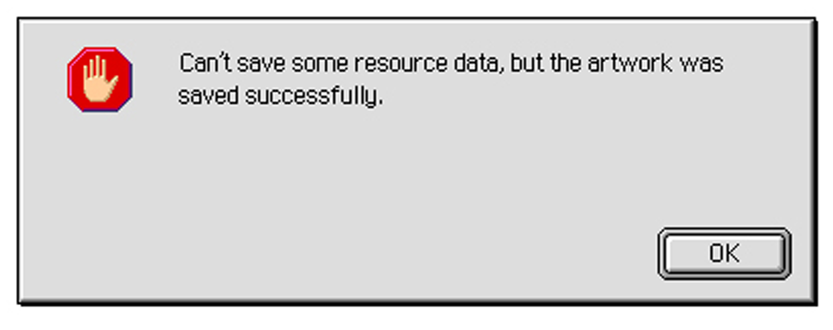쿽 안에 있는 일러에서 작업한거구요. 그걸 저장하면 저 경고가 뜨고요. 그걸 어찌됐건 저장은 되기땜에 저장을 했어요. 그리구 쿽에서 부른거죠. 그럼 이상하게 나옵니다. 예를들어 점선을 저장했는데 색상 다 무시하고 직선만 나온다던지 이렇게요..;