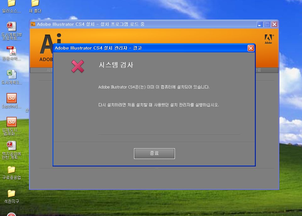 이미 설치되어 있는 프로그램과 버전(일반적인 CS4 등의 버전이 상세 버전)이 다른 새로운 설치 프로그램으로 진행을 하게 되면, 위와 같은 메시지를 만나게 됩니다.