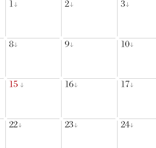 달력작업할때는 저렇게 하는 방법도 있겠지만 텍스트 박스 하나에 탭으로 앉히는 경우도 있구요..어 방법이야 여러가지지만 자기 손에 편한걸로 하는게 낫겠죠 ^^