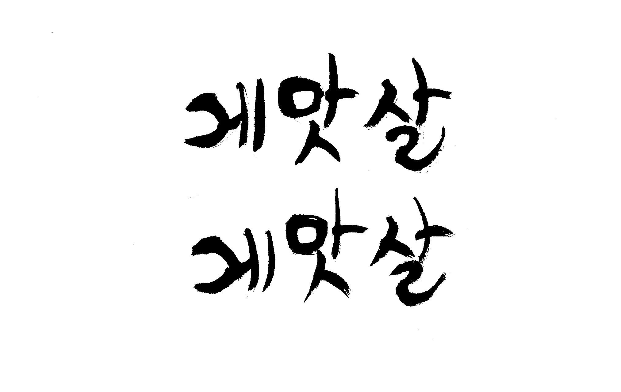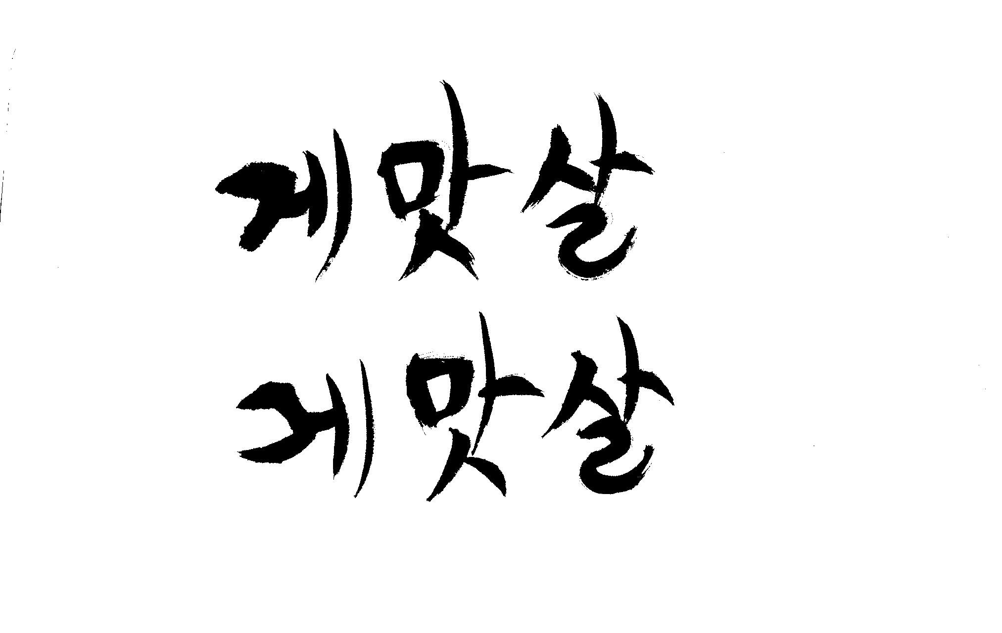 캘리 부탁드립니다. 김철호 일반 0 6353 2009.01.30 09:49 > > 제가 이리저리 써보기도 했으나 너무 이상해서 도움을 받고자 합니다. > 단어는 '게맛살' 입니다. 패키지디자인에 사용할 타이틀입니다. > 급한사항이니 부탁드립니다. 감사합니다. ^^ >